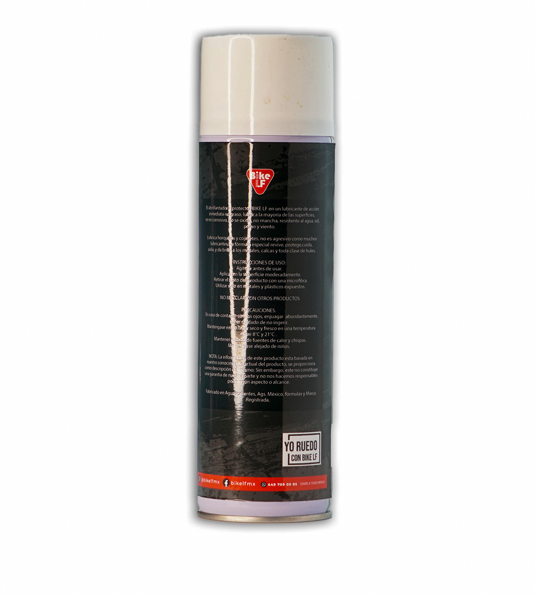 - rociar sobre llantas, cuadro, manubrio, asiento, piezas metálicas y plásticas.